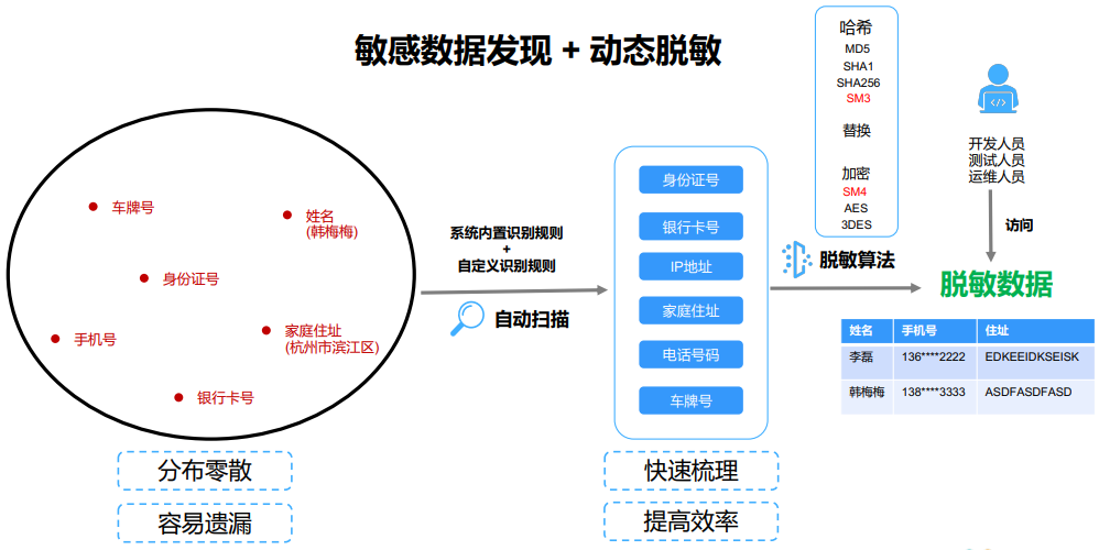 数据脱敏通过对敏感信息采用脱敏方式进行匿名化,防止因生产库中的主要数据,明文显示在测试系统中,导致数据泄漏问题。