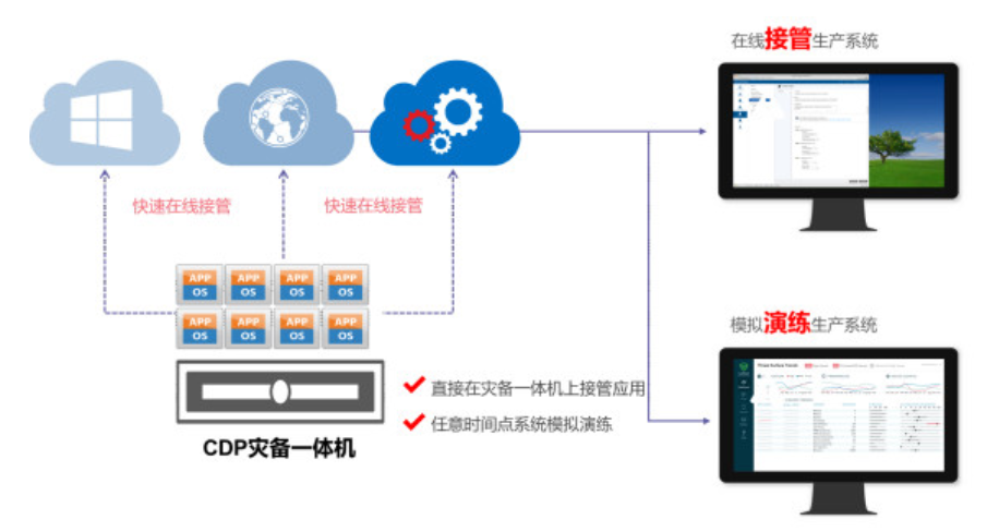 基于应用容灾切换包括一系列的动作:停止灾难节点的部件服务、切断数据复制链路、建立数据容灾基线、启动容灾节点的部件服务、通知前端设备进行业务网络切换。具体动作可以结合实际情况,通过脚本来定制。